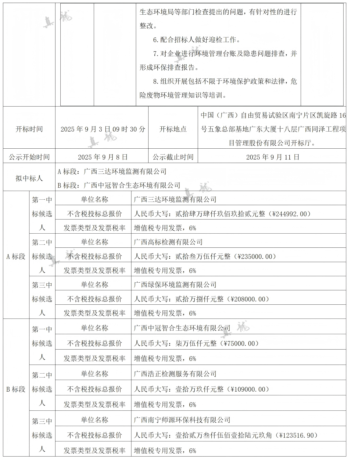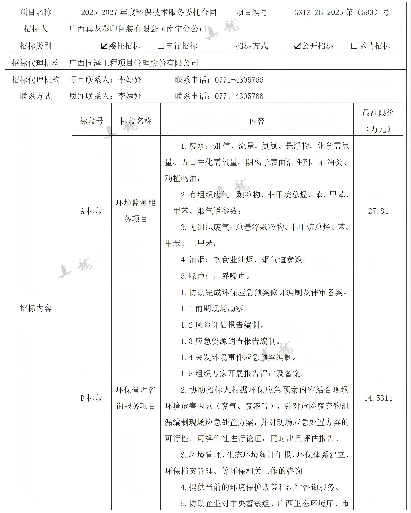 廣西真龍彩印包裝有限公司南寧分公司2025-2027年度環(huán)保技術服務委托合同(項目編號:GXTZ-ZB-2025第(593)號)中標候選人公示